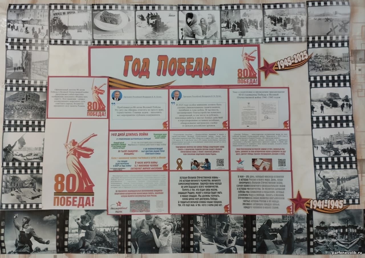 В рамках проекта «В сердце каждого – Победа!» и празднования 80-летия Великой Победы в Задоринской сельской библиотеке оформлен информационный стенд «Год Победы».