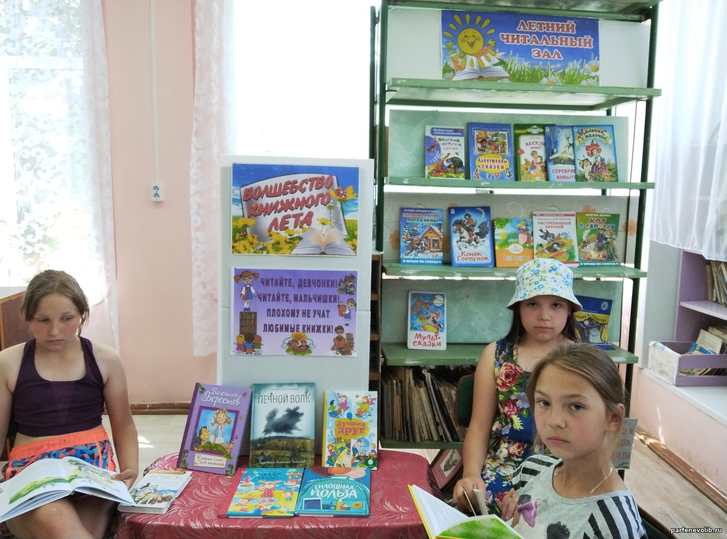 Посещение Потрусовской сельской библиотеки для ребят из разновозрастного отряда «Факел» стало настоящим праздником. Здесь их ждала книжная выставка «Волшебство книжного