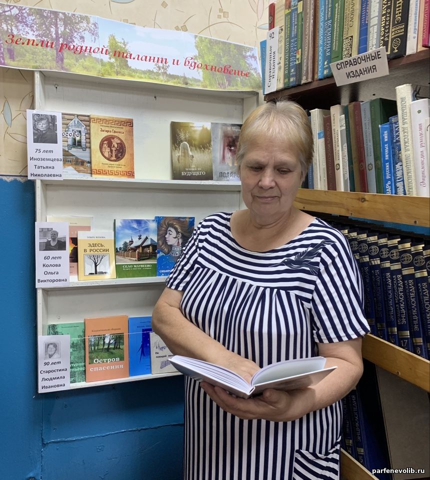| Краеведческая выставка «Земли родной талант и вдохновенье» представлена в Вохтомской сельской библиотеке для широкого круга читателей. Она приурочена к юбилеям местных авторов, членов Союза писателей России, нашего Парфеньевского округа: 75-летию Т.Н. Иноземцевой, 60-летию О.В. Коловой и 90-летию Л.И. Старостиной. На выставке - сборники произведений авторов о природе родного края, о любви к ро
