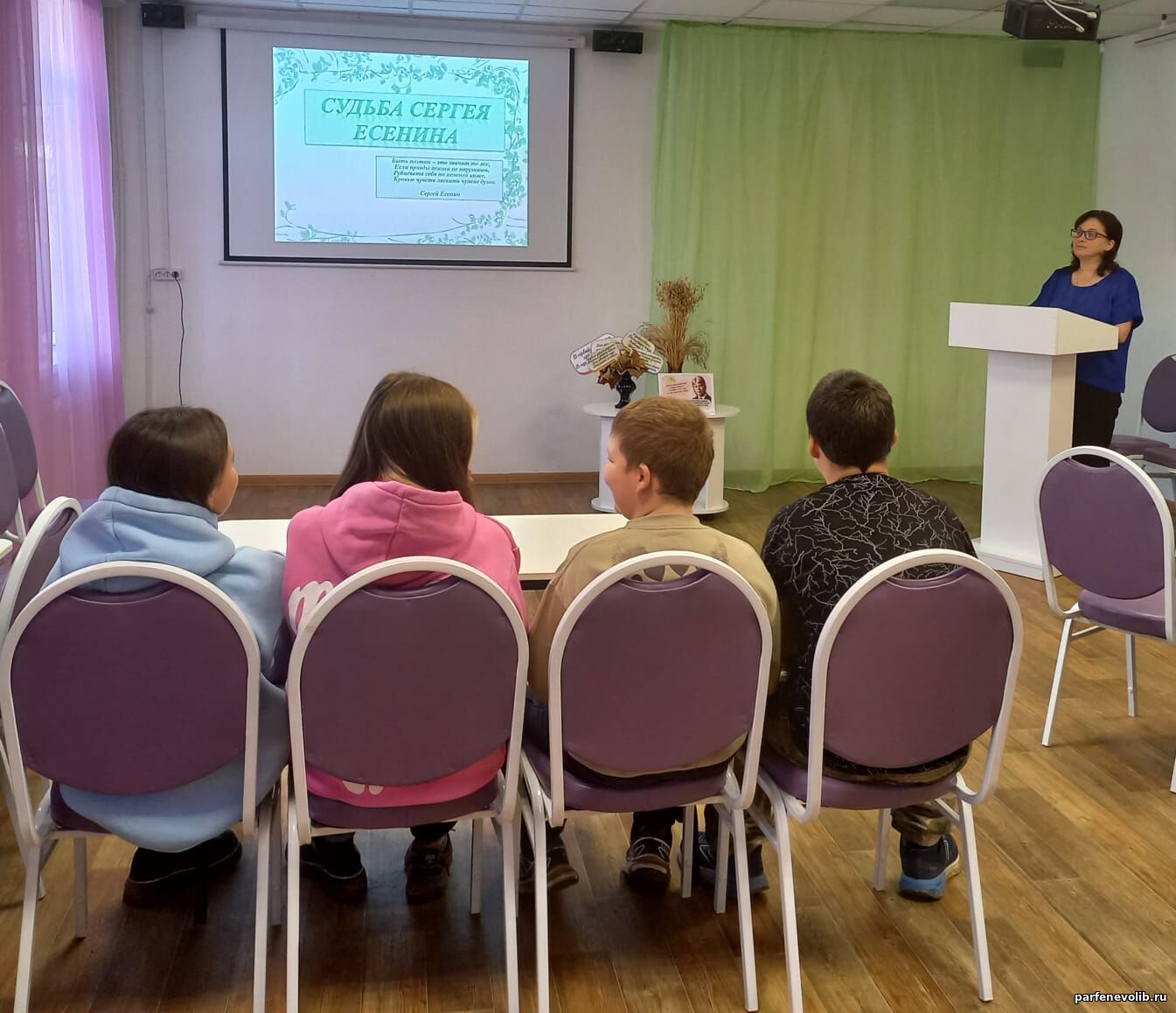 | В рамках проекта Пушкинская карта для учащихся Вохтомской школы работниками Парфеньевской центральной библиотеки был проведен литературно-музыкальный вечер «Знакомый вам Сергей Есенин». Мероприятие было приурочено к 130-летию русского поэта.