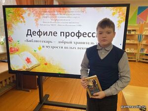 Для того чтобы доступно и интересно представить детям профессию библиотекаря, библиолига организовала дефиле профессий «Библиотекарь - добрый хранитель знаний и мудрости многих веков». О том, насколько престижна и значима данная профессия, о высочайших требованиях, предъявляемых к библиотекарям, о том, какие выдающиеся люди работали в библиотеках, дети узнали из рассказа ведущих и слайд-презентации. Видеоролик о возникновении книгохранилищ познакомил ребят с уходящей глубоко в древность историей библиотек.