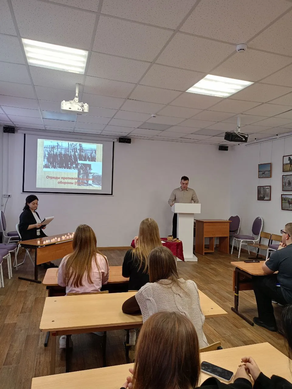 Особое внимание уделялось записям воспоминаний старшей сестры Ирины, которая поделилась своей личной историей о том, как дети преодолевали голод, холод и страх перед бомбёжками, как потеряли мать и оказались в детском доме на нашей Костромской земле. Повествование было подкреплено презентацией, включающей визуальные элементы — фотографии и архивные кадры, позволившие создать наглядное правдивое представление о событиях того периода.