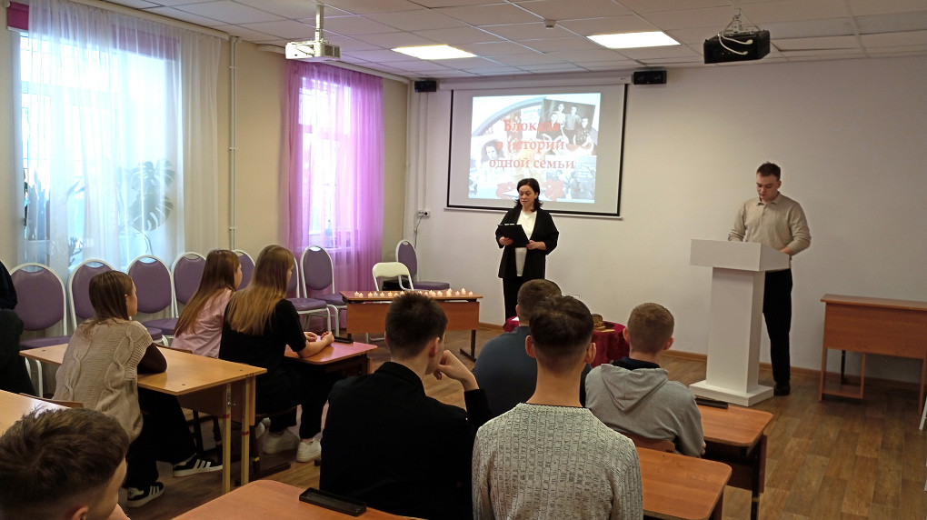 Во время мероприятия учащиеся познакомились с историей двух сестёр — Ирины и Наташи, пережившими все трудности и лишения ленинградской блокады. Рассказ о суровых испытаниях, через судьбу этих девочек и их семью, позволил школьникам ощутить атмосферу того трагического времени, которое пережили ленинградцы.
