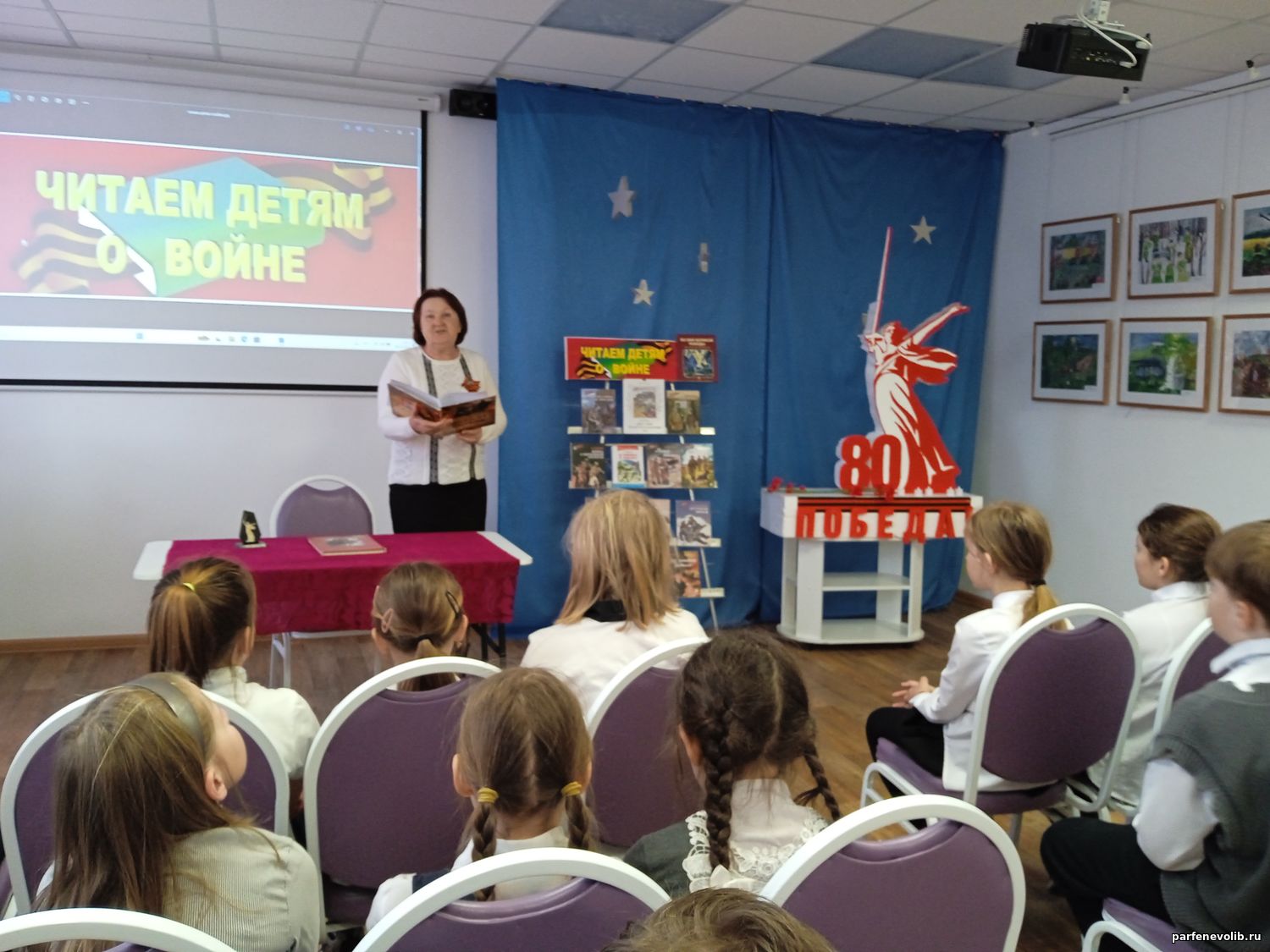 6 мая Парфеньевская центральная библиотека присоединилась к XVI Международной акции «Читаем детям о войне», во время которой, ежегодно по всей России и во многих других странах, проходят громкие чтения для детей и подростков лучших произведений о Великой Отечественной войне.