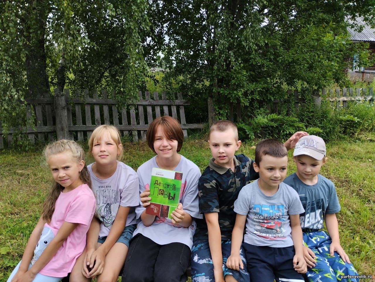 Затем ребята собрались на дружеские посиделки «С книгой на скамейке». Они прочитали повесть в рассказах Б. Минаева «Детство Лёвы» и с интересом обсудили истории «Эра телевидения», «Горький лук», «Один дома».