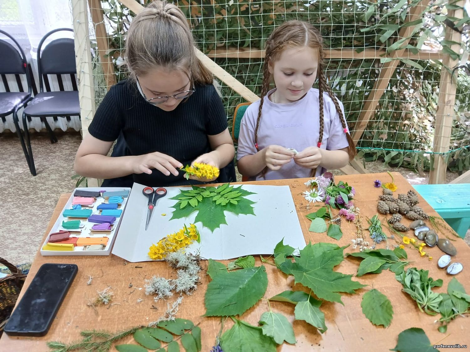 Чтение рассказа Н. Носова «Затейники» настроил детей на творчество, «разбудил» фантазию. Они создали необыкновенные картины из природного материала. У кого-то вышла яркая цветочная поляна, а кто-то придумал красивое платьице для принцессы. Свои замечательные работы ребята подарят родным.