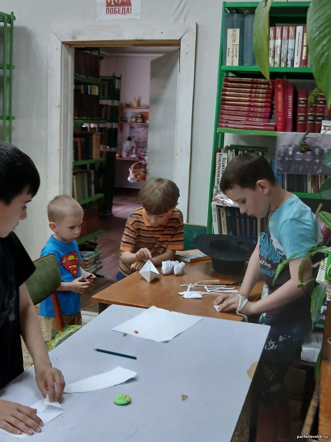 Затем дети приняли участие в мастер-классе «Давай научу», где старшие показали, как делать кораблик и лодочку в технике оригами.