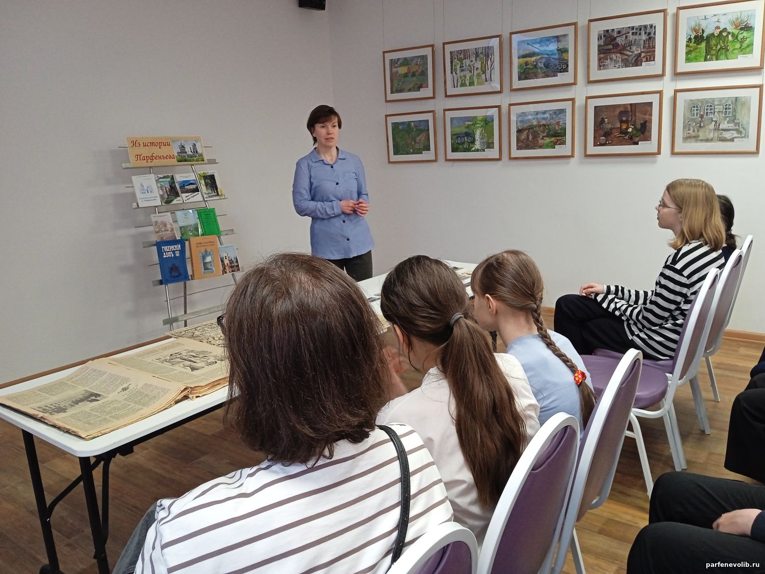 В мае учащиеся 5 класса школы с классным руководителем пришли в Парфеньевскую центральную библиотеку на познавательную экскурсию «Моё Парфеньево».