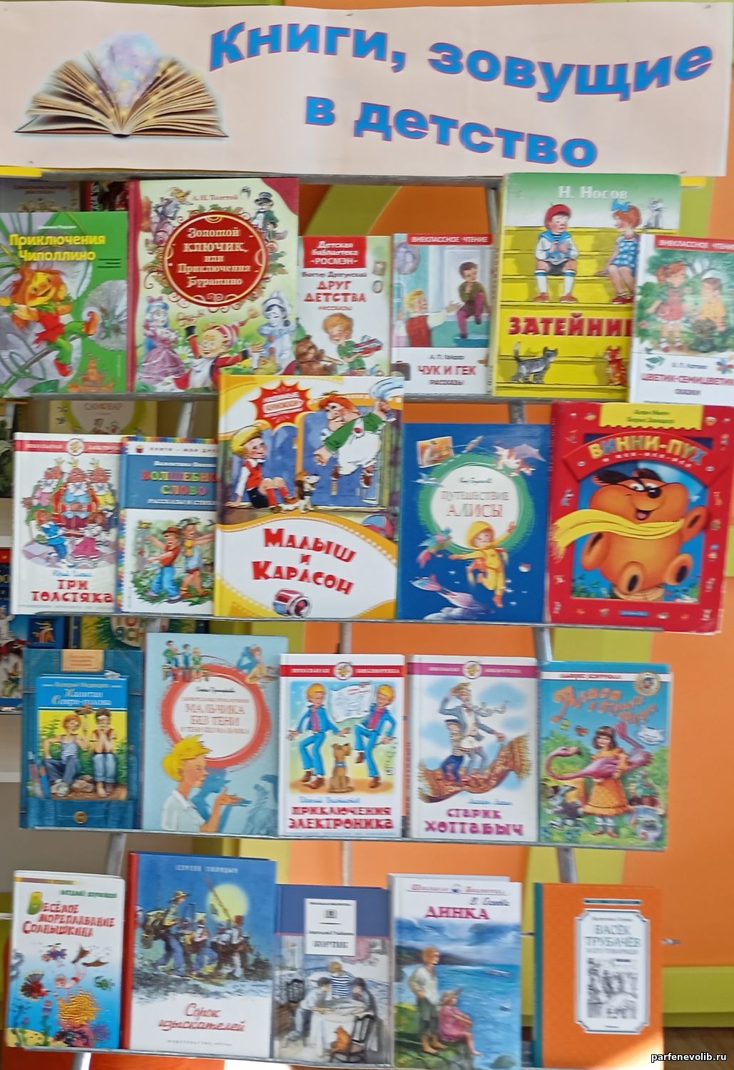 Неделю детской книги в Парфеньевской центральной библиотеке открыла книжная выставка «Книги, зовущие в детство». Детям и родителям, бабушкам и дедушкам, предлагается взять и вместе почитать книги, вошедшие в Золотой фонд детской литературы.