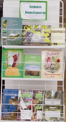 На выставке собраны книги, которые понравятся как взрослым, так и детям. Среди них: яркий познавательный фотоальбом «Заповедник Кологривский лес» от издательства «Линия График Кострома», журналы о заповеднике, «Сказки Кологривского леса», а также детская книга «Путешествие медвежонка Яши в заповедник "Кологривский лес"», повествующая о маленьком медвежонке, который, потерявшись, случайно оказался в заповедном лесу.