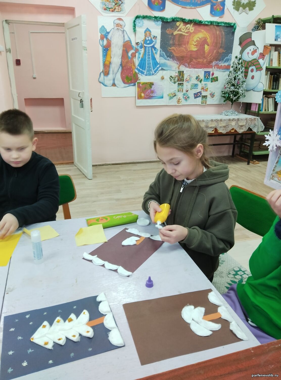 Кульминацией мероприятия стал творческий мастер-класс. Каждый ребенок с душой мастерил аппликацию «Зимняя ёлочка», чтобы подарить её самому близкому человеку — маме, папе или бабушке.