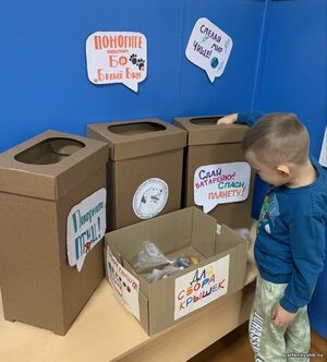 -к благотворительным экоакциям по сбору использованных батареек и пластиковых крышечек;