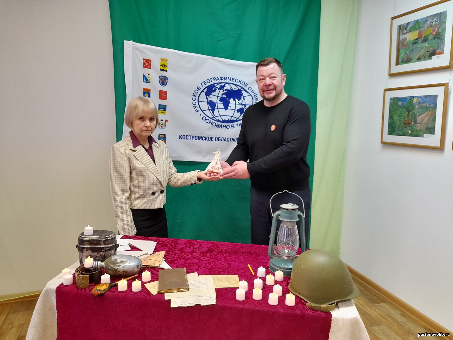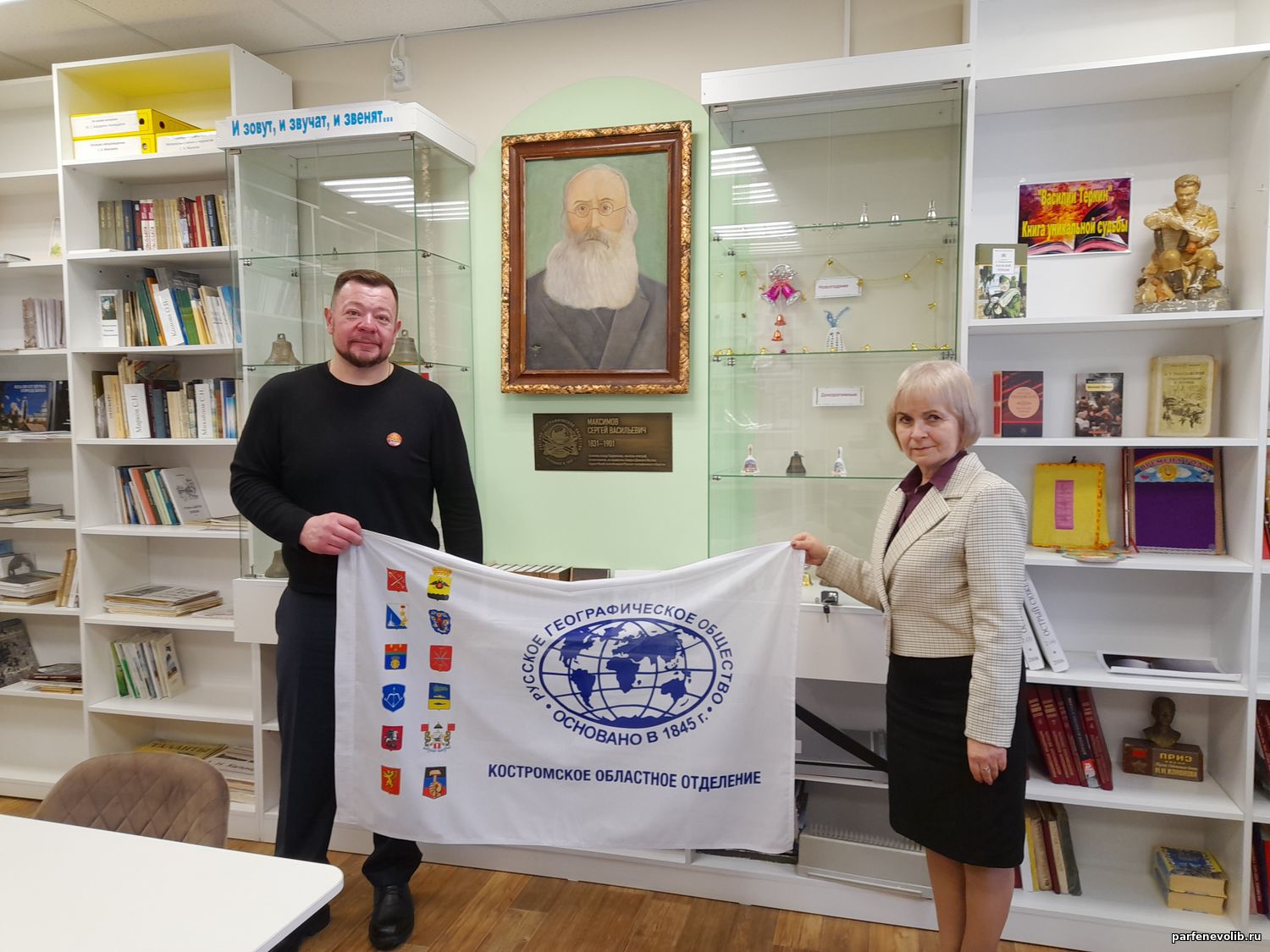 8 апреля Парфеньевскую центральную библиотеку посетил председатель Костромского областного отделения Русского географического общества Дмитрий Шнур. Цель его визита - знакомство с районом и передача земли, собранной у мемориалов славы 11 городов-героев России и Беларуси. Передача земли состоялась в центральной библиотеке. С уважением и признательностью к прошлым поколениям священную землю приняла заместитель главы Парфеньевского муниципального округа М.П. Сомова.