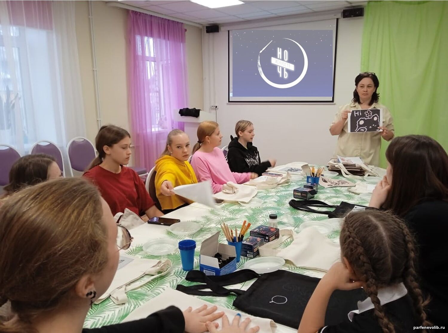 В рамках ежегодной традиционной акции «Ночь искусств», в стенах уютной Парфеньевской библиотеки, прошла познавательная программа «Мир народного творчества». Библиотекарь познакомила участников с историей появления сумки, с сумкой как аксессуаром женской одежды, а затем в интерактивной части прошло увлекательное занятие- роспись шопперов. Шоппер ‒ это холщовая эко-сумка, с которой удобно ходить на учебу, в магазин, да и просто на прогулку. Сумки-шопперы очень актуальны, ведь экологичная сумка с оригинальным дизайном ‒ самый настоящий тренд нашего времени!