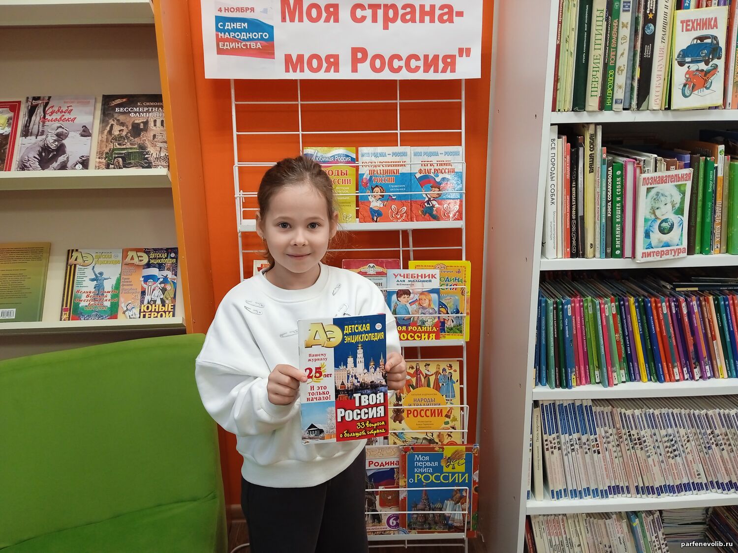 В Зале детского чтения Парфенеьевской центральной библиотеки в преддверии Дня народного единства оформлена книжная выставка «Моя страна – моя Россия!».