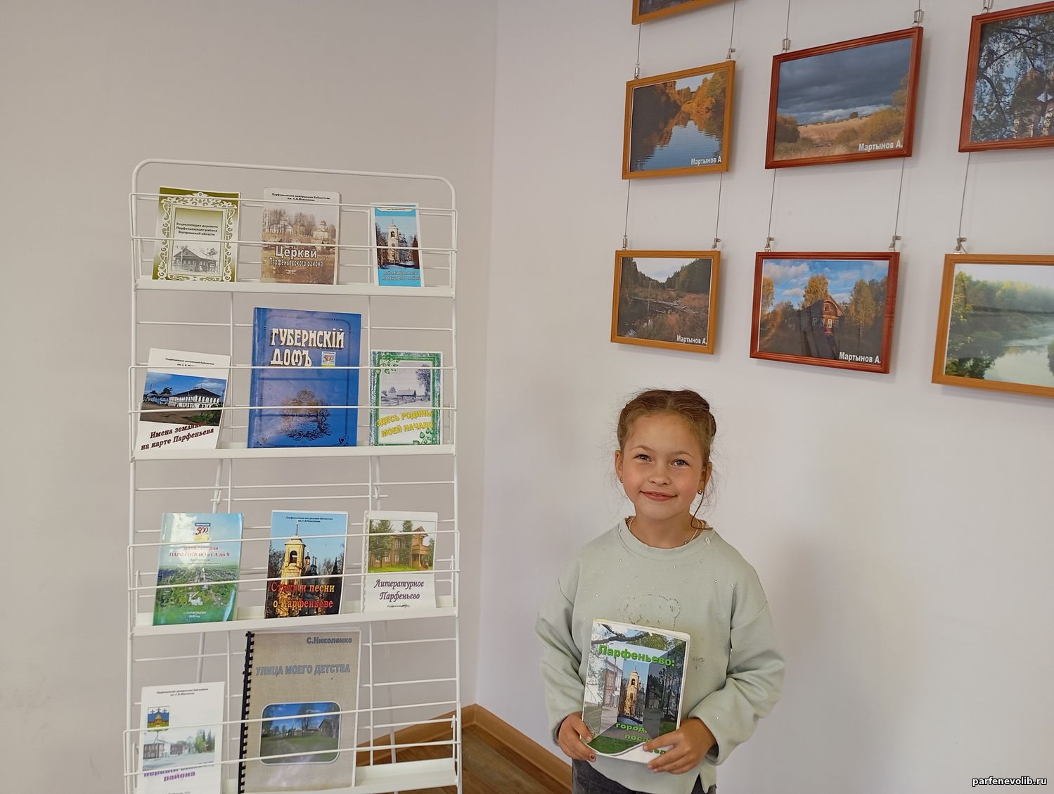 Вернувшись в библиотеку, дети прослушали обзор книг с тематической выставки об улицах села, храмах, гербе Парфеньева.