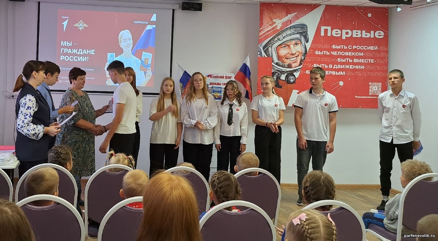 22 августа в Парфеньевской центральной библиотеке имени С.В. Максимова состоялась торжественная церемония вручения паспортов юным гражданам Парфеньевского округа. Мероприятие было приурочено ко Дню Государственного флага Российской Федерации и прошло в рамках проекта Движения Первых «Мы — граждане России».