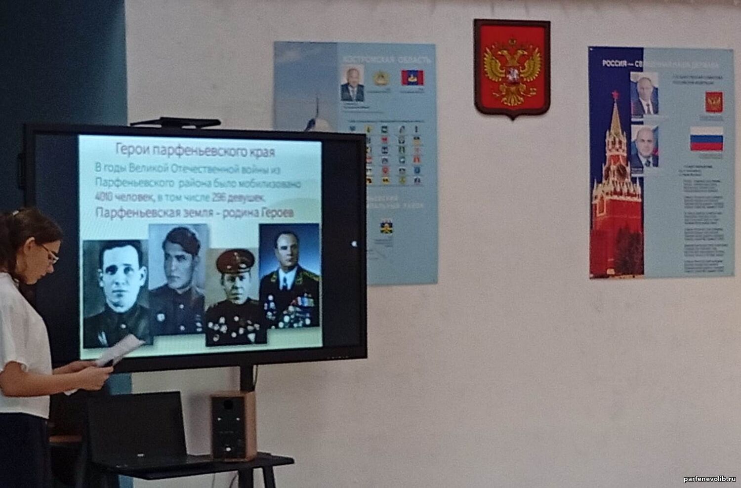 Россия – страна героев. Эта мысль звучала в каждой фразе, запечатлелась на каждом слайде презентации. Ребята вспомнили об Александре Невском, героях Отечественной войны 1812 года, первой Мировой и Великой Отечественной войн. Конечно, особое внимание было уделено нашим героям- землякам.