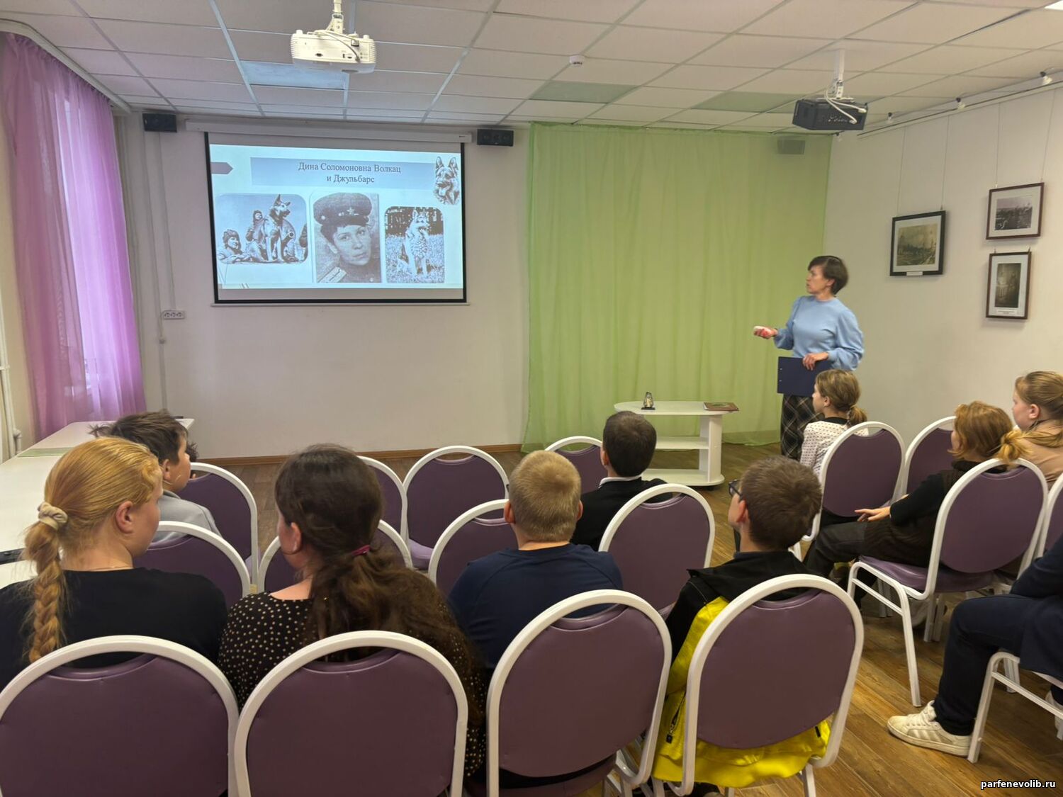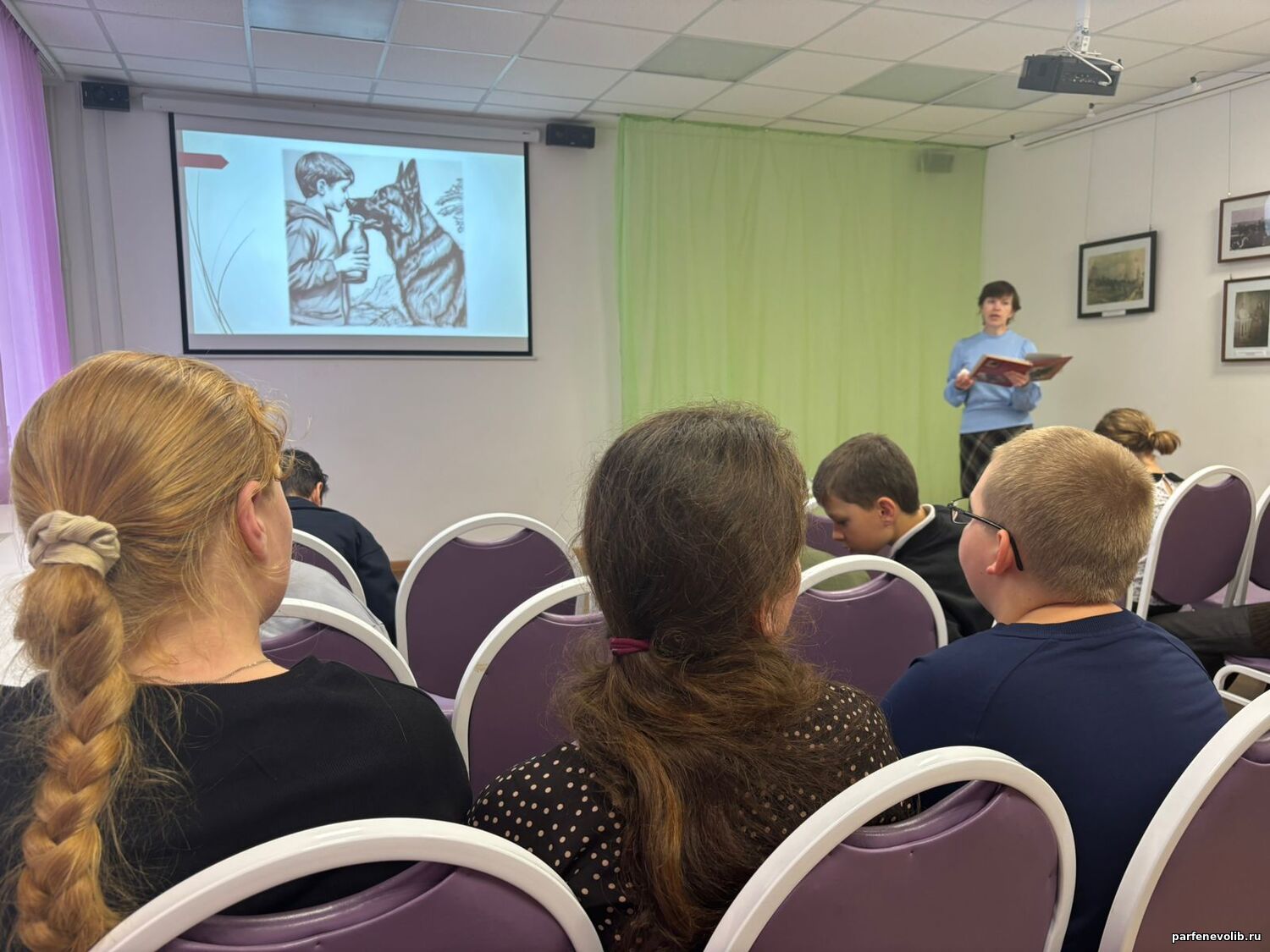 Начался он с прочтения рассказа Веры Чаплиной «Джульбарс» о мальчике, который подарил солдатам Советской армии собаку, ставшую впоследствии лучшей в минно-розыскном деле. Чтение библиотекарь сопровождала показом подготовленной видеопрезентации.