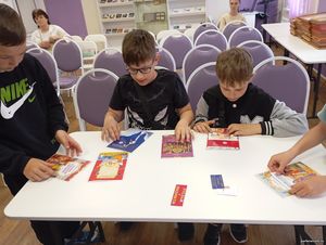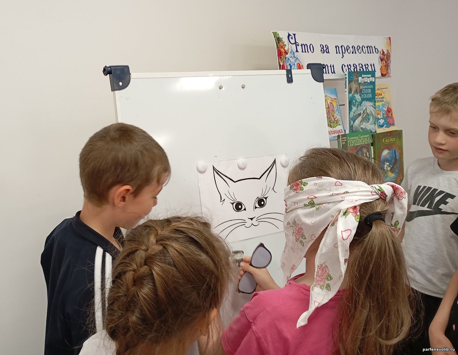 Продолжением мероприятий стали «Путешествия по страницам сказок Пушкина». Школьники посмотрели познавательный видеоролик о жизни и творчестве поэта, из представленных обложек различных сказок выделили сказки Пушкина, в зашифрованной сетке нашли нужные слова из и отправили все вещи из волшебного ларца героям сказок. Подвижные весёлые конкурсы «Наряди Кота учёного» и «Слови рыбку» вызвали море положительных эмоций.