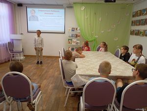 Библиотекарь с помощью видеопрезентации познакомила ребят с поэтами- парфеньевцами: С.Н. Михайловым, Л.И. Старостиной, Т.Н. Иноземцевой, О.В. Коловой, Л.И. Кузьминым, рассказала о каждом из них и обратила внимание участников отряда на книжную выставку с авторскими и коллективными поэтическими сборниками.