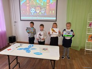Продолжением путешествия стал интерактивный библиотечный урок-игра, во время которого дети исполняли «желания» волшебного цветка: угадали «спрятавшиеся» книги, показали свою внимательность в загадках-обманках, участвовали в весёлой разминке с библиотекарем, получили телеграмму от доктора Айболита и узнали о том, как бережно обращаться с книгами. Выполнив все «желания», ребята стали юными читателями нашей библиотеки.