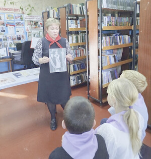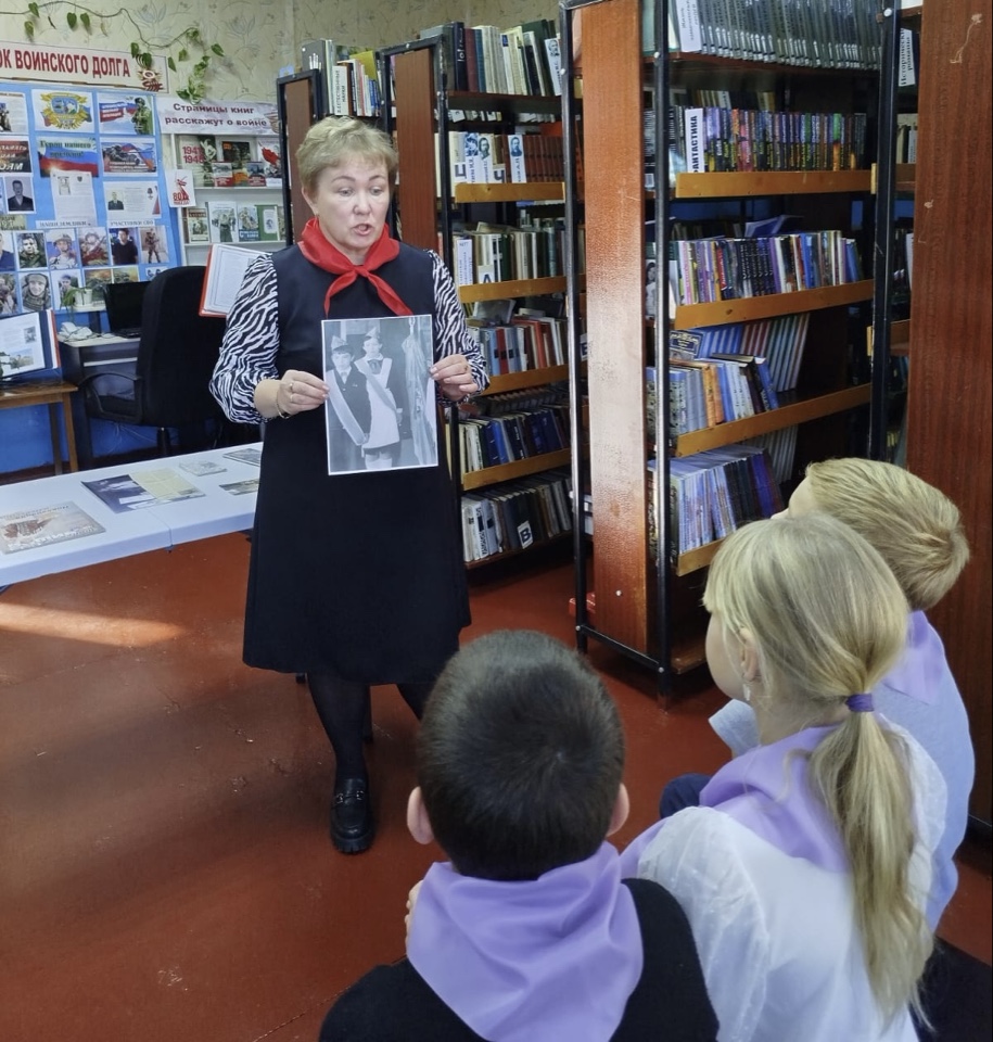 В ходе встречи библиотекарь рассказала орлятам-третьеклассникам об интересной и насыщенной школьной жизни будучи пионеркой-активисткой и о самом ярком событии своего пионерского детства-поездке в Международный детский центр «Артек». Во время рассказа внимание детей было акцентировано на тех важных качествах, которые помогают вести за собой других, достойно идти своим жизненным путем и являться примером для других.