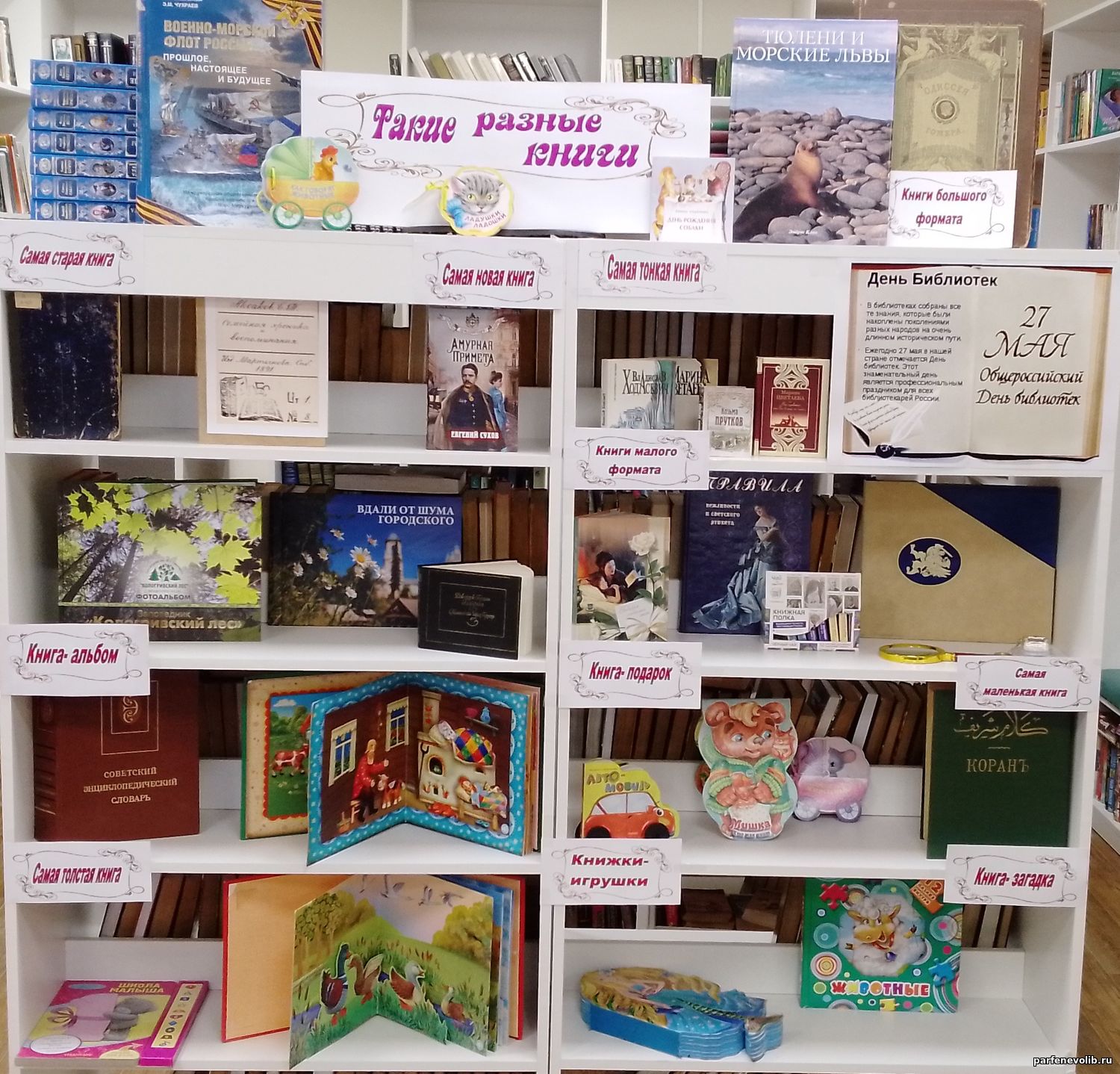 В Парфеньевской центральной библиотеке им. С.В. Максимова к Общероссийскому Дню библиотек оформлена книжная выставка «Такие разные книги». На ней представлены уникальные книги: разных форматов, разных тем, раскрывающие фонд нашей библиотеки. Здесь и одна из первых книг с инвентарным номером 8- «Семейная хроника» С. Аксакова 1891 года издания и самая новая книга 2025 года издания. В самой толстой книге насчитывается 1500 страниц, в самой тонкой- 8 страниц. А также здесь книги самых больших и самых маленьких форматов, книги-загадки, книги в подарок, книги игрушки. Поздравляем наших читателей с праздником и приглашаем на выставку «Такие разные книги».