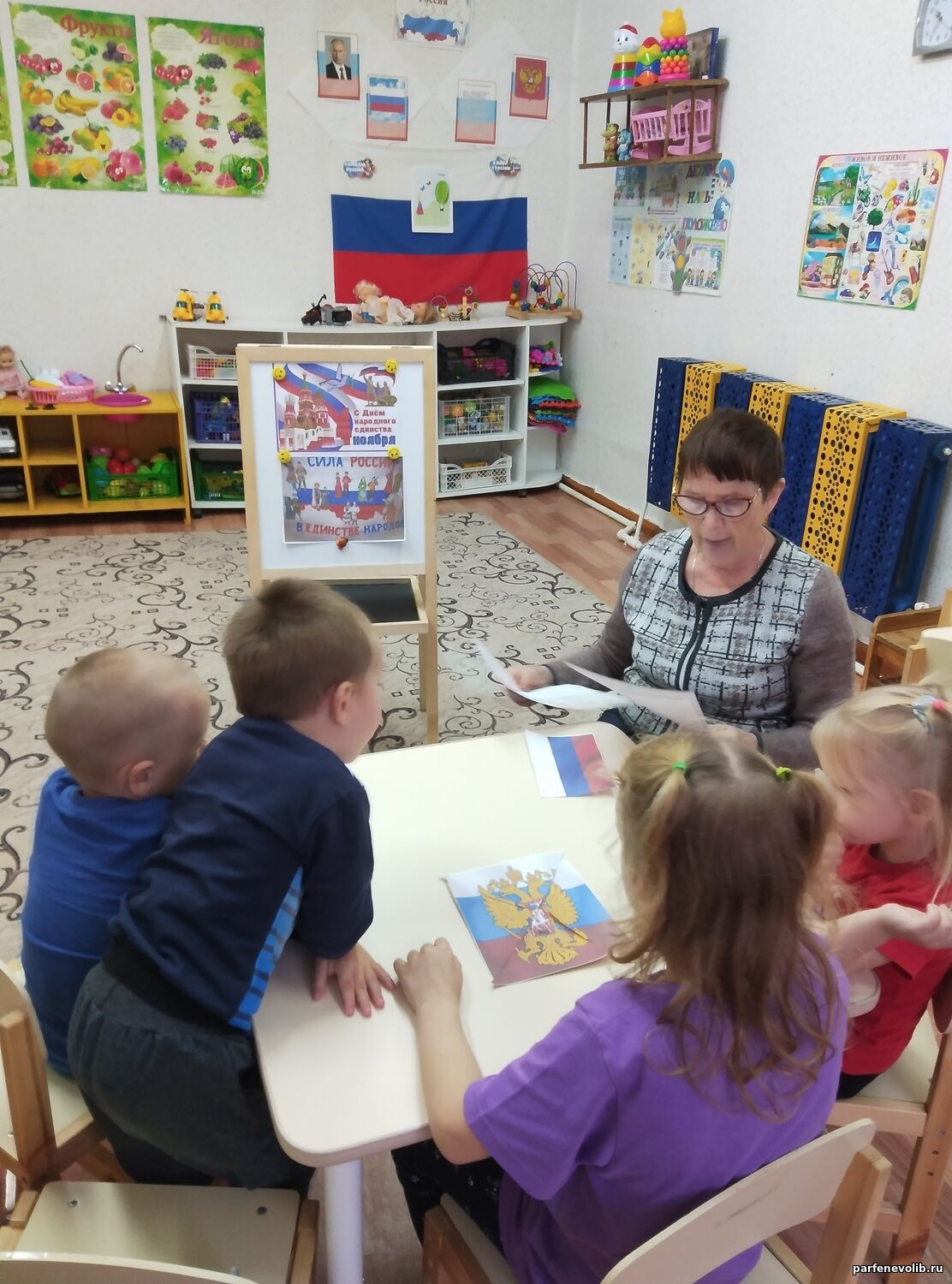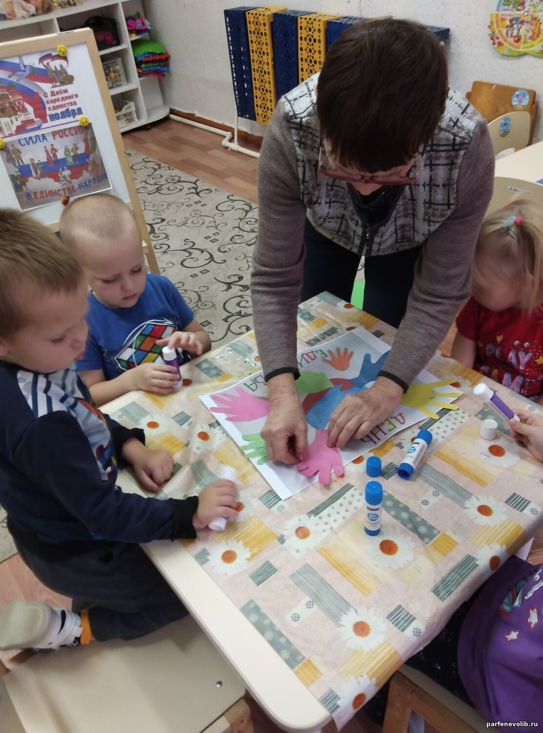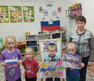 Дети активно участвовали в играх «Ладошки» и «Какая наша Россия», а также создали плакат «В единстве наша сила». В конце мероприятия все вместе спели Гимн России.