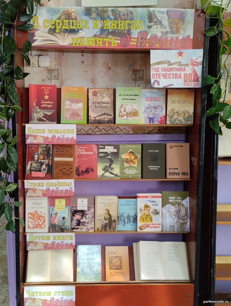 В рамках Года защитника Отечества и празднования 80-летия Победы в Великой Отечественной войне в Задоринской сельской библиотеке оформлена книжная выставка «В сердцах и книгах память о войне».