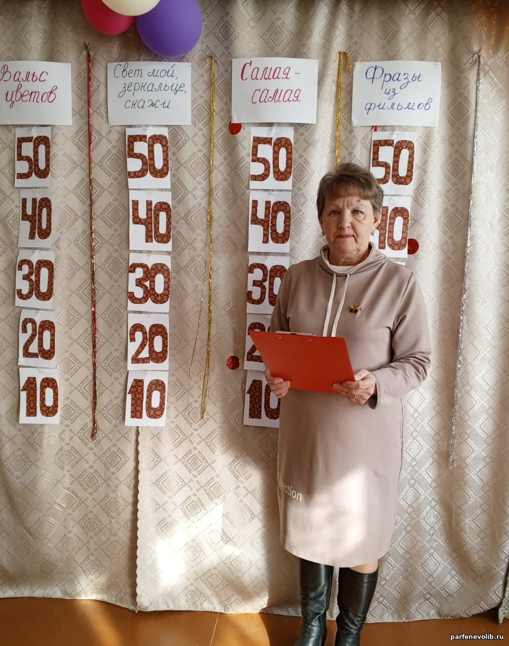 Поздравив милых дам с праздником, и пожелав им всего самого наилучшего, библиотекарь предложила им принять участие в интеллектуальной КВИЗ игре. После объяснения правил и, разделив игроков на три небольшие команды, началась игра. Вопросы, на которые надо было дать ответ, были разбиты на пять категорий: «Цветочный вальс», «Самая – самая», «Мужской вопрос», «Свет мой, зеркальце, скажи», «Фразы из фильмов». В каждой категории по пять вопросов, цена вопроса зависела от его сложности. Команды участвовали в игре с азартом и желанием победить, постоянно проявляя свои знания и логику. Встреча получилась очень весёлой, интересной и занимательной.