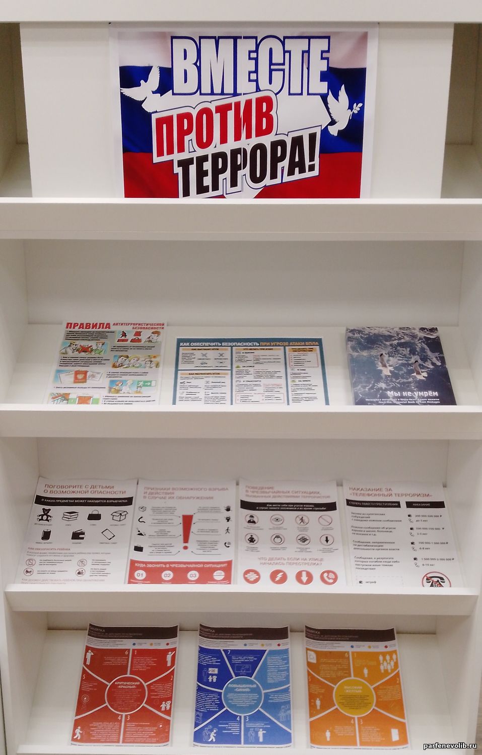 На информационной выставке «Вместе против террора», оформленной в Парфеньевской центральной библиотеке, размещены памятки и статьи о правилах антитеррористической безопасности, о безопасности при угрозе атаки беспилотных летательных аппаратов, правила поведения заложников при захвате, а также телефоны экстренных служб при угрозах теракта. Представленная информация поможет принять правильные решения в сложной и опасной ситуации, избежать беды, сохранить свою жизнь и спасти жизни других людей.