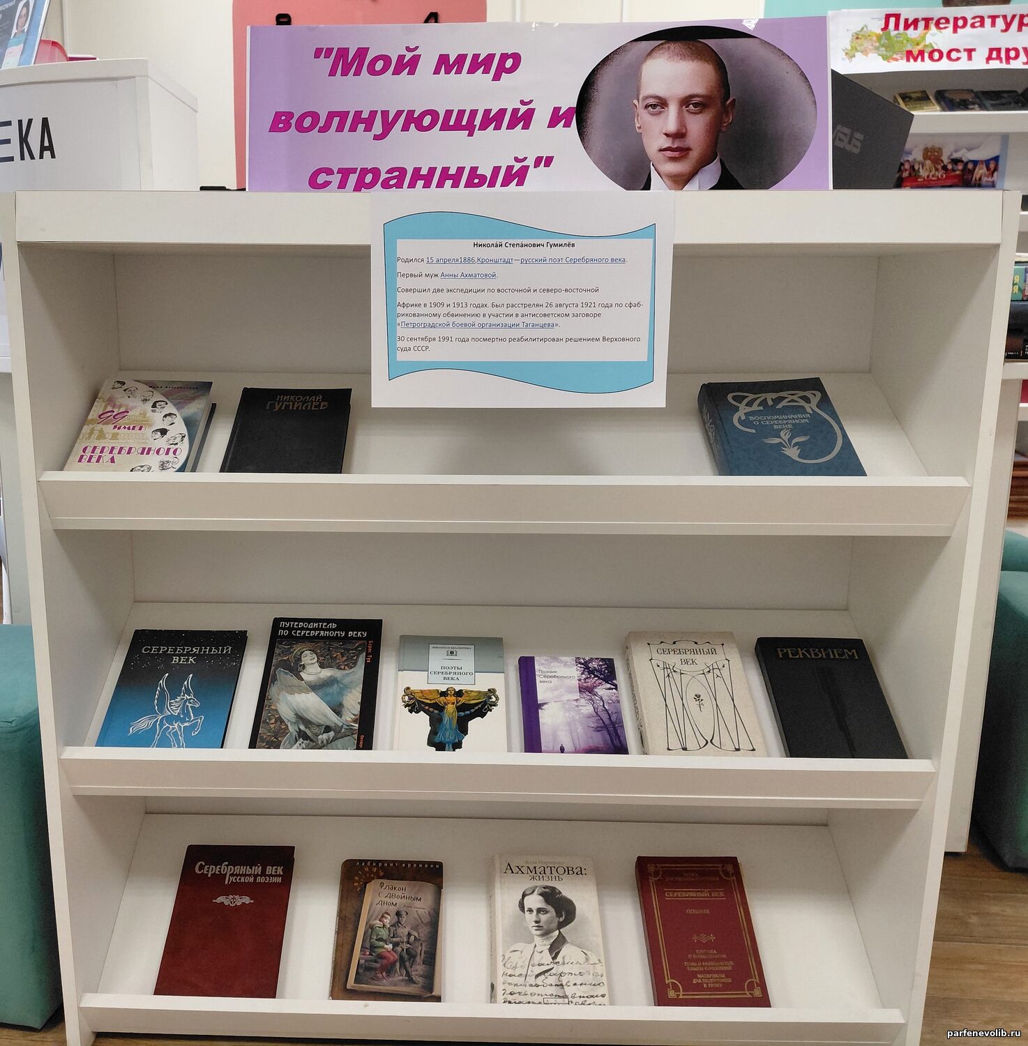 | В Парфеньевской центральной библиотеке открылась книжная выставка «Мир волнующий и странный», посвящённая 140-летию со дня рождения выдающегося русского поэта Серебряного века, Николая Степановича Гумилёва.