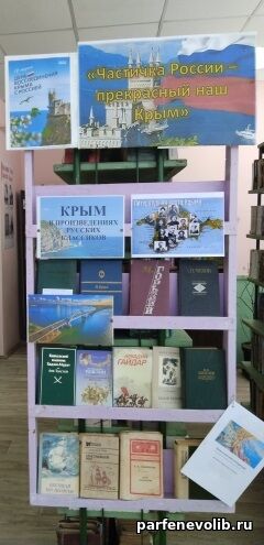 | В Парфеньевской центральной библиотеке оформлена книжная выставка «Крым – частичка великой России», приуроченная к 12-летию воссоединения Крыма с Россией. У них общая историческая судьба: полуостров всегда был связующим звеном между разными народами, культурами и цивилизациями.