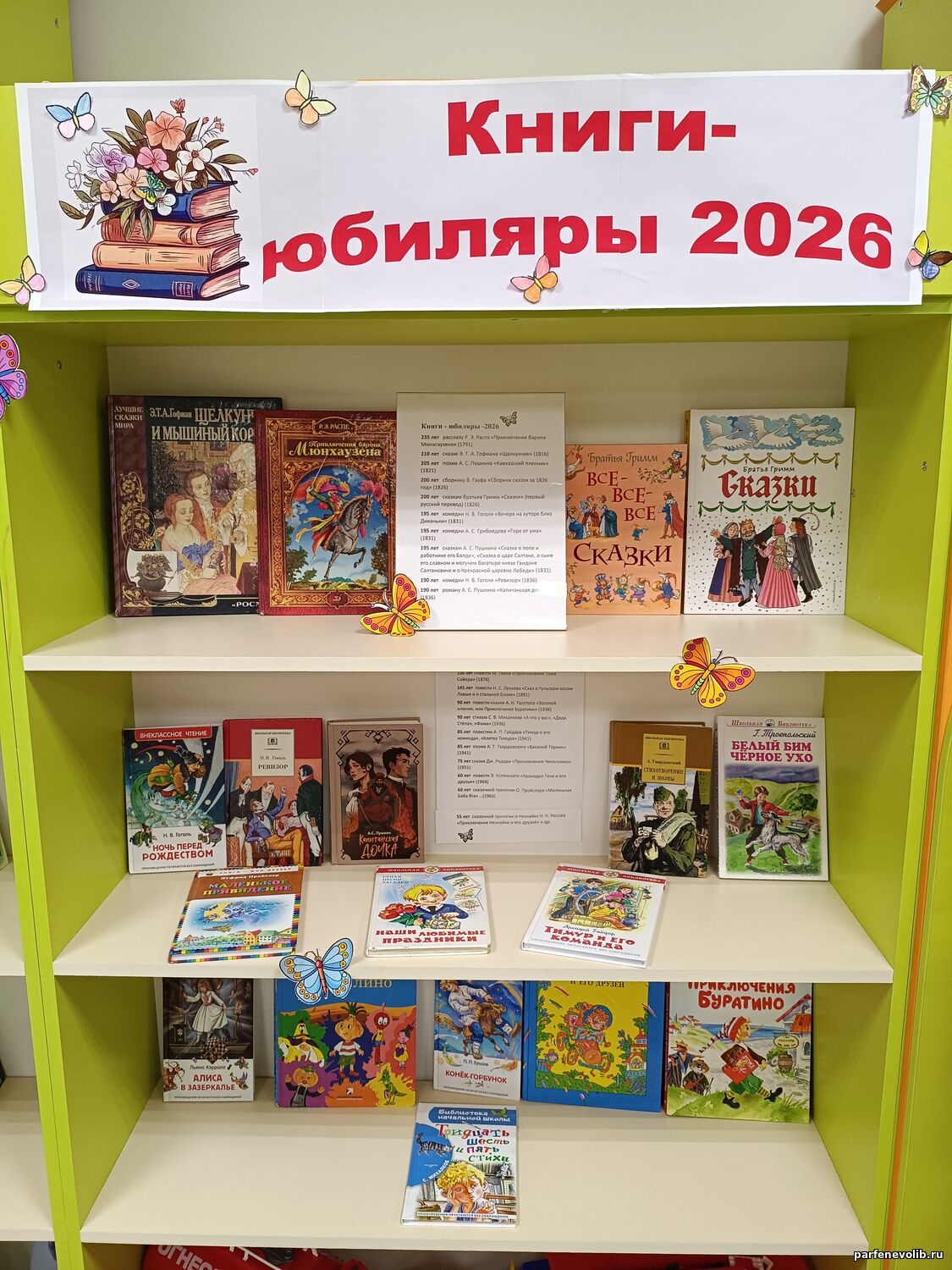 | В Парфеньевской центральной библиотеке им. С.В. Максимова открылась постоянно действующая выставка «Книги- юбиляры 2026». На ней собраны произведения, которые отмечают в 2026 году круглые даты со дня своего первого издания.