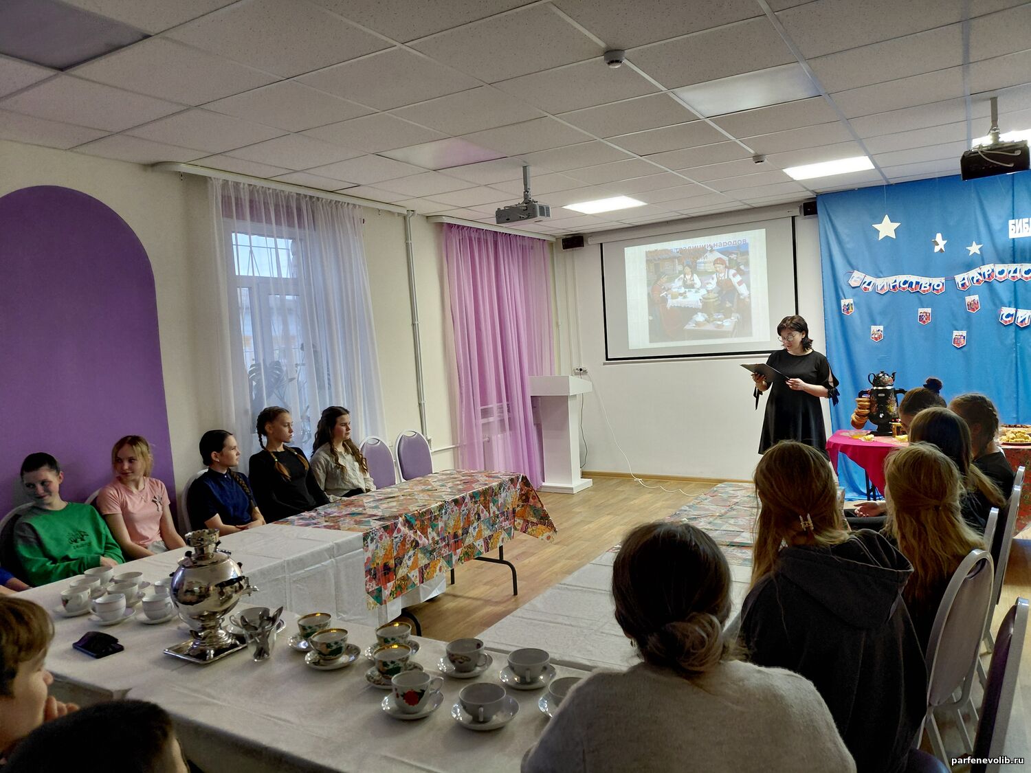 Встреча началась с увлекательного рассказа библиотекаря о происхождении праздника, многовековых традициях, которы