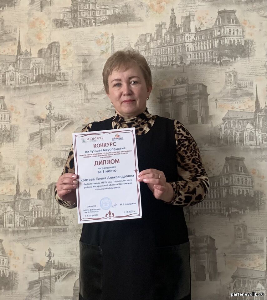 | Библиотекарь Вохтомской сельской библиотеки Коптева Е.А. одержала победу в областном конкурсе на лучшее мероприятие проекта межведомственного взаимодействия школьных и общедоступных библиотек Костромской области «БиблиоЛига», который был организован областным государственным бюджетным учреждением культуры «Костромская областная библиотека для детей и