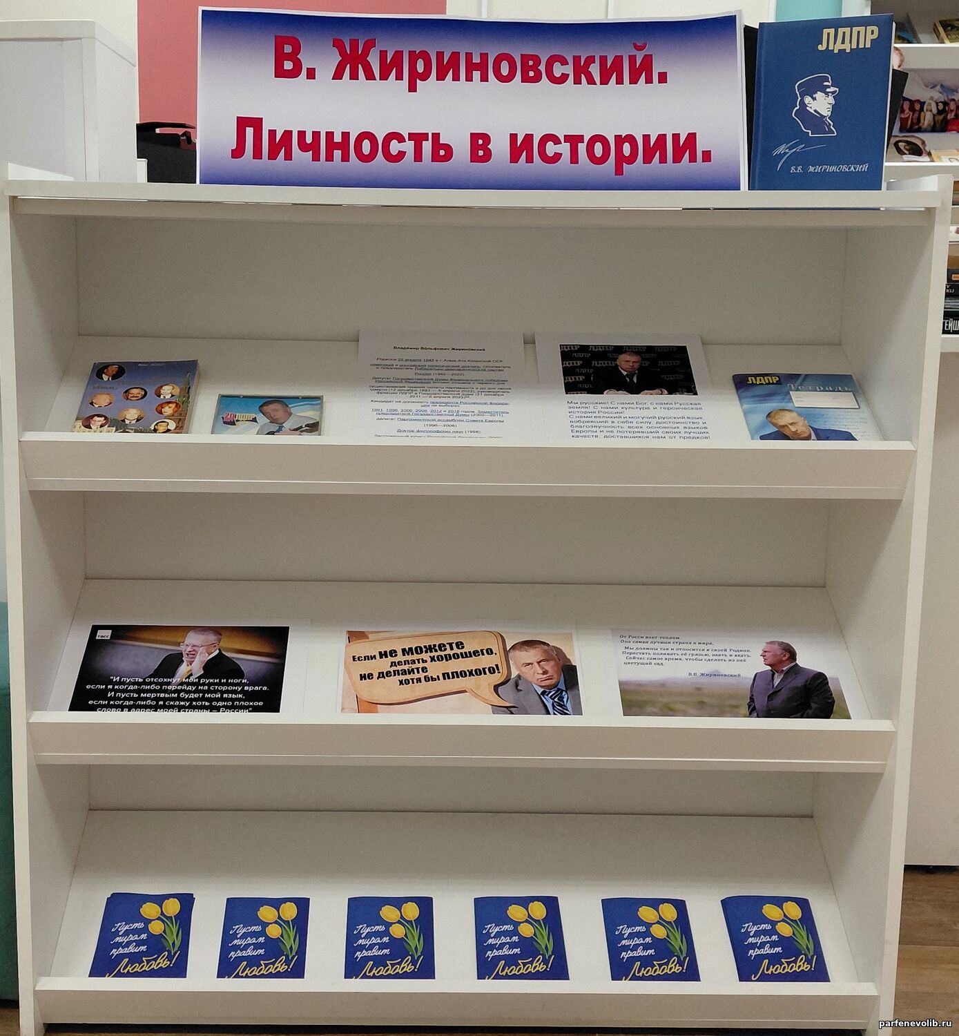 | Накануне 80-летия со дня рождения выдающегося российского политика Владимира Вольфовича Жириновского в Парфеньевской центральной библиотеке оформлена информационная выставка. Экспозиция рассказывает о биографии, политическом пути и наследии Жириновского, охватывая его жизнь от юности до становления основателем первой альтернативной партии в СССР и депутатом Госдумы всех созывов. Особое внимание уделяе