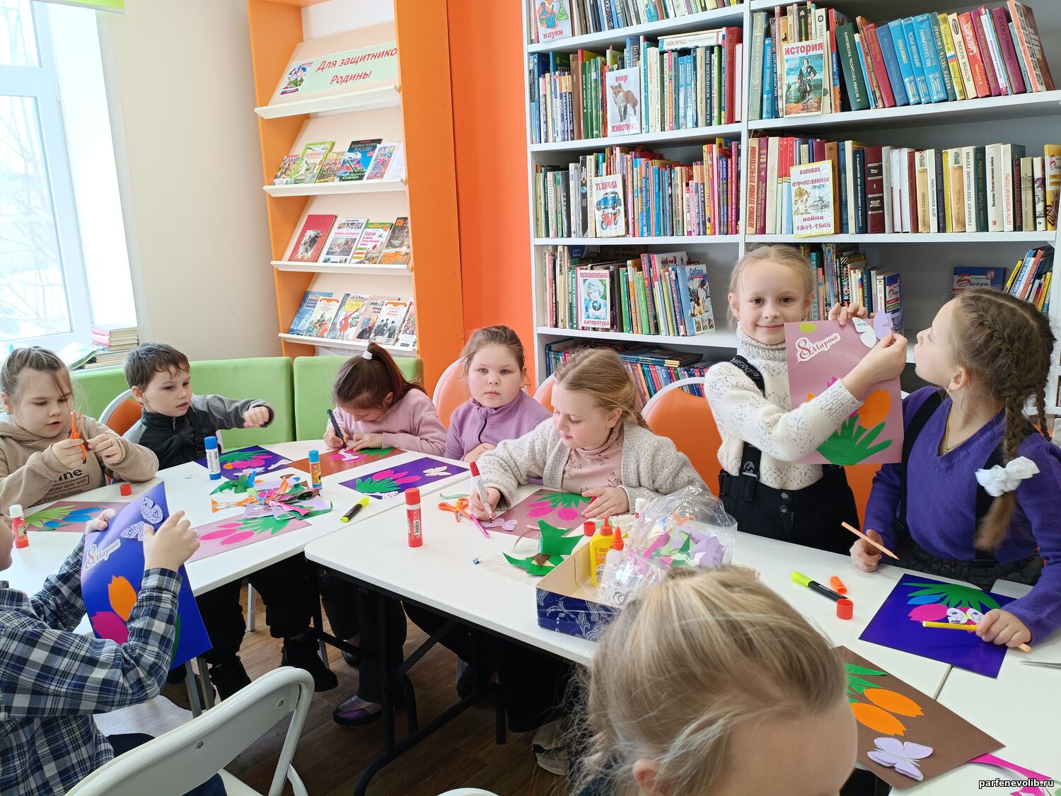 В Парфеньевской центральной библиотеке для учащихся 1- го класса состоялась литературно творческая программа «8 Марта — день особый».