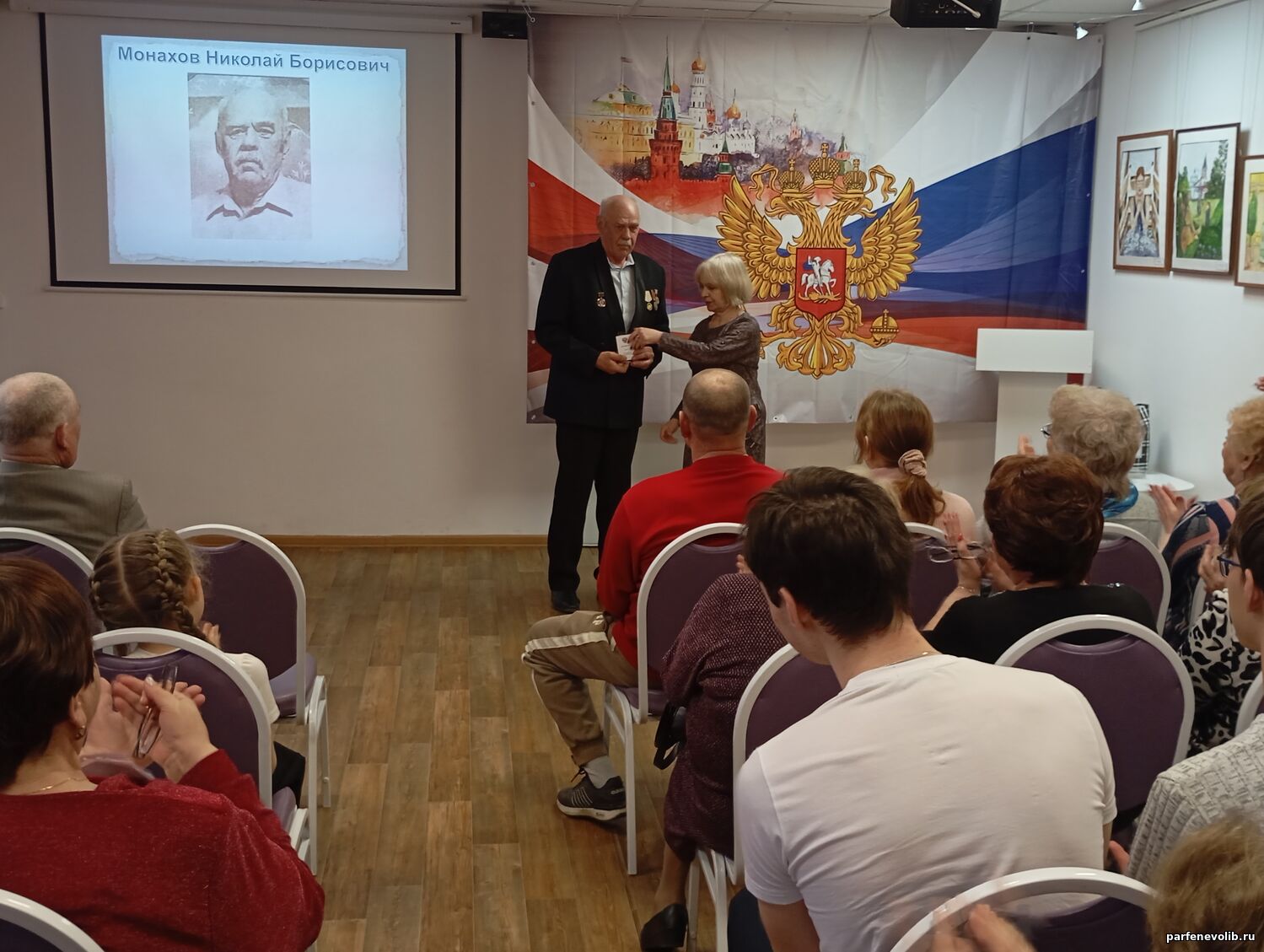 Заместитель главы администрации Парфеньевского округа М. П. Сомова вручила памятные медали участникам ликвидации Н. Н. Крылову и Н. Б. Монахову, поздравила их с наградой и пожелала крепкого здоровья, долгих лет жизни и благополучия.