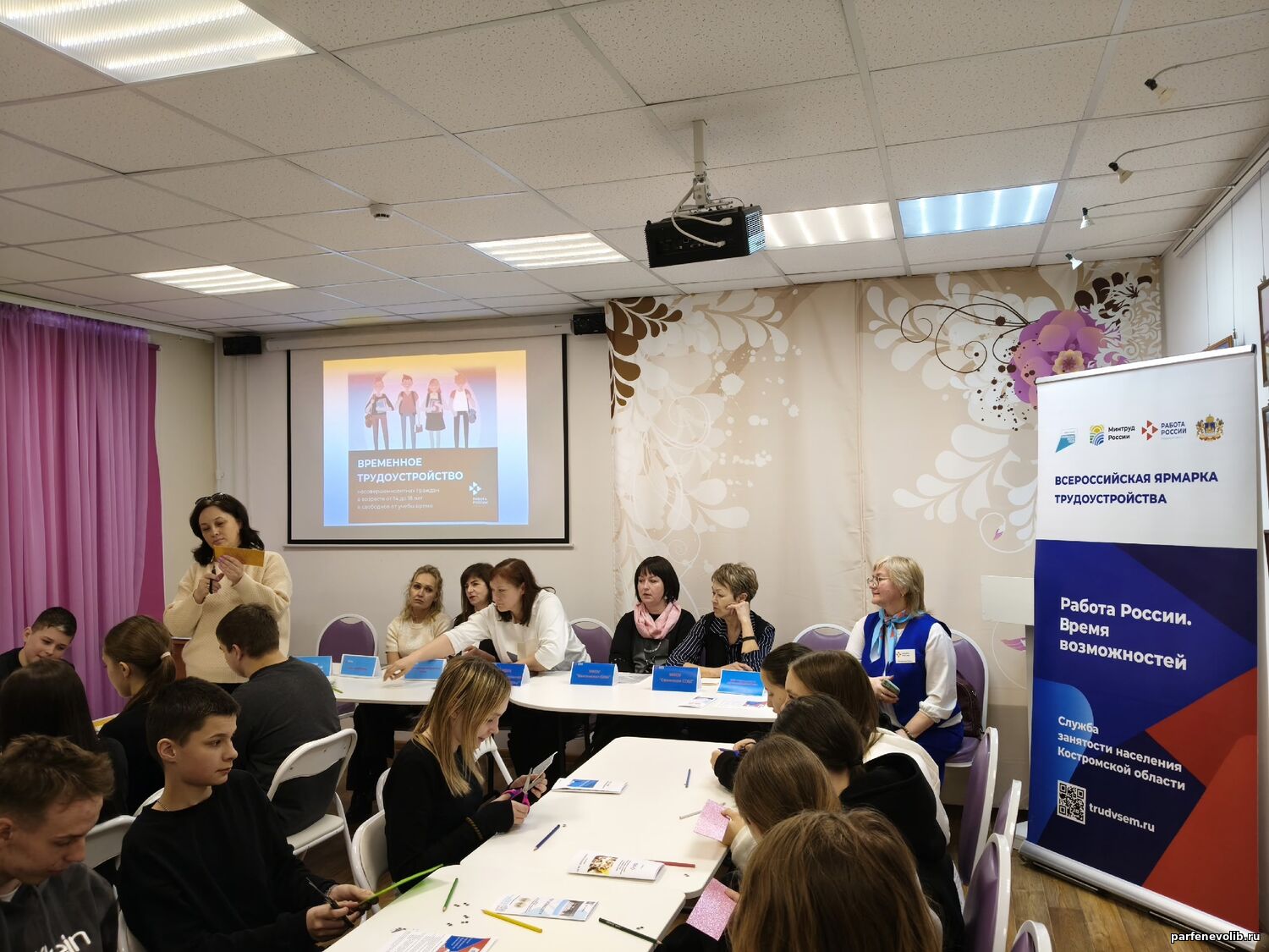 20 марта на базе Парфеньевской центральной библиотеки состоялась Ярмарка трудоустройства несовершеннолетних. Мероприятие было организовано совместно с кадровым центром «Работа России» и собрало подростков, желающих узнать о возможностях летнего трудоустройства и первых шагах в профессиональной жизни.