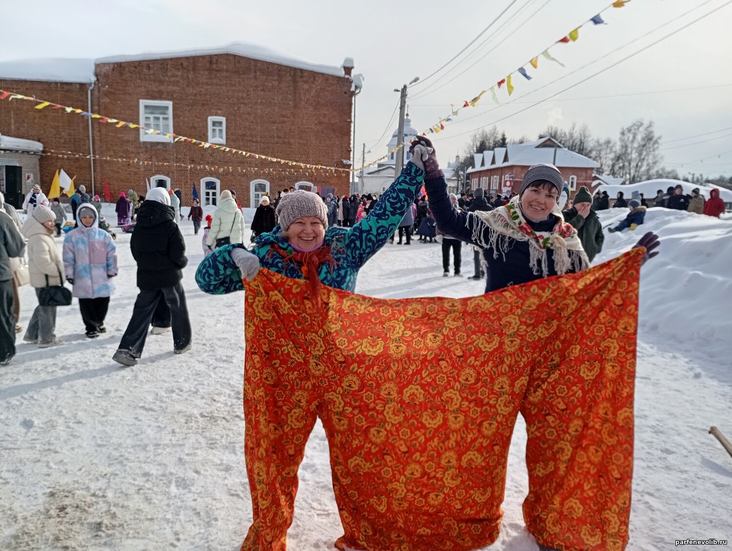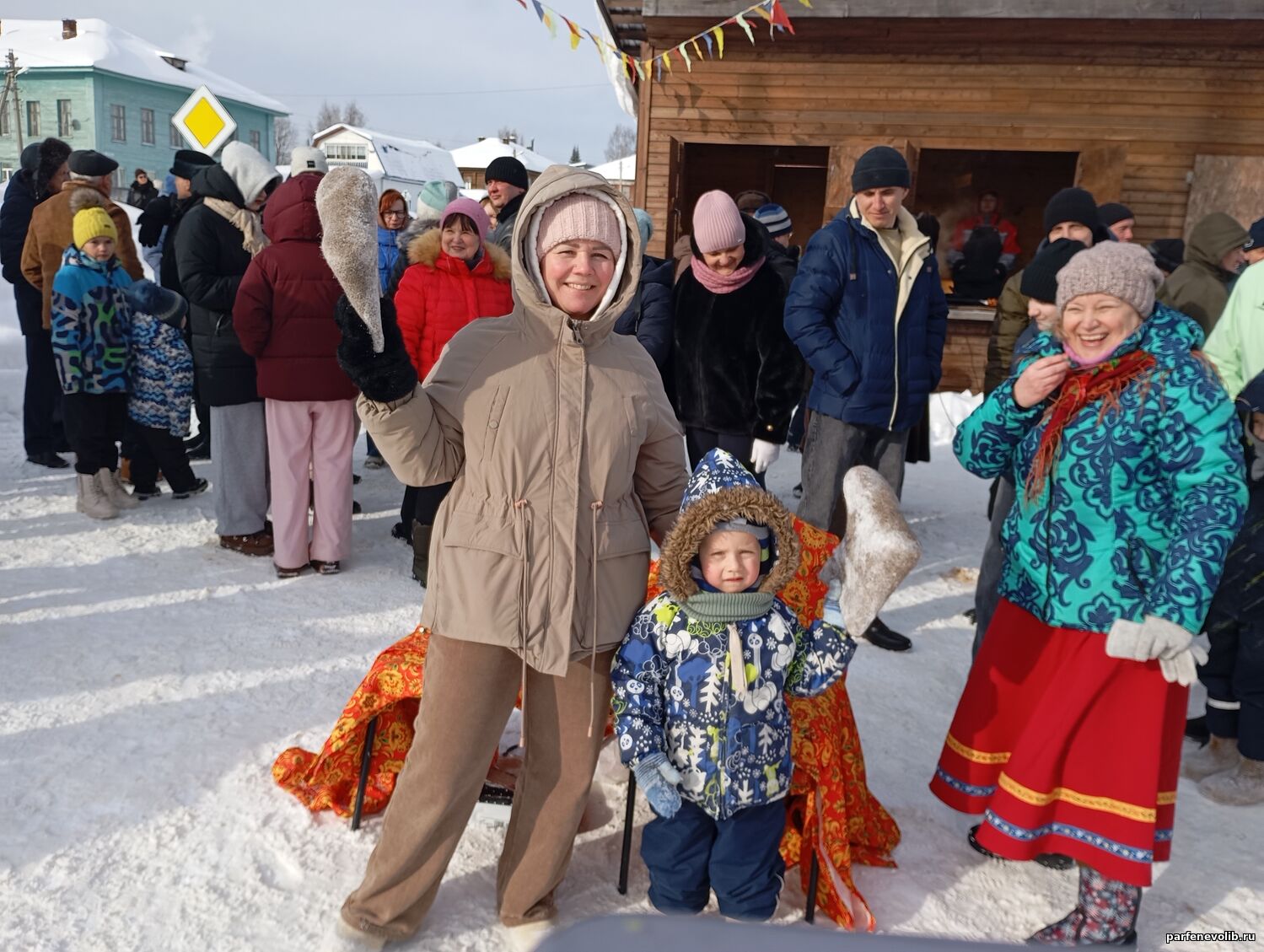 В воскресенье весёлые масленичные гуляния собрали жителей и гостей Парфеньева в центре села. Вкусные угощения, румяные блины, конкурсы и забавы, праздничная концертная программа – всё было интересно и увлекательно. Парфеньевская центральная библиотека провела для участников гуляний весёлые развлечения по киданию валенков и бега в штанах.