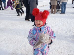 Дети активно, наперебой старались кинуть валенок как можно дальше, и у многих это хорошо получалось. Ребята участвовали в конкурсе парами, и, что порадовало, детей часто поддерживали родители. Семейные команды показывали мастер-класс в кидании валенков, а вот побегать в широких ярких штанах пожелали только дети. Для этого конкурса нужны ловкость и расторопность. Две пары мальчишек и девчонок, путаясь в штанинах, старались оказаться быстрее и опередить соперников. Эстафета от души повеселила ребят и порадовала болельщиков.