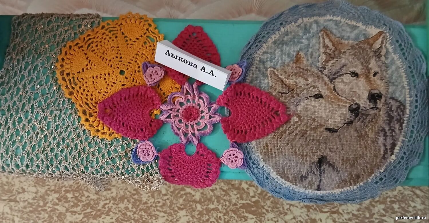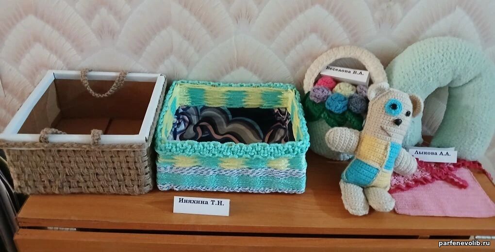 Не оставили равнодушными и вязаные крючком изделия В. А. Веселовой, Т. Н. Иняхиной и А. А. Лыковой. Оригинальные салфетки и мягкие игрушки заняли достойное место на выставке.