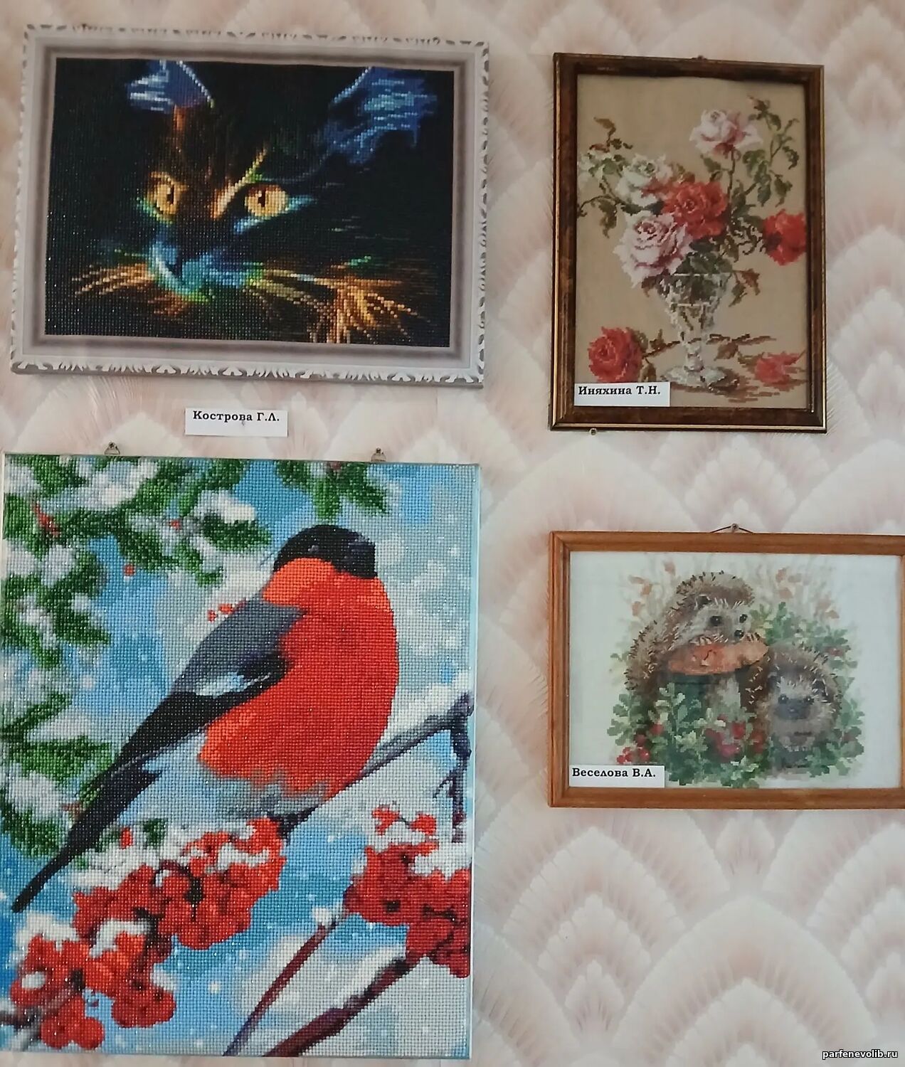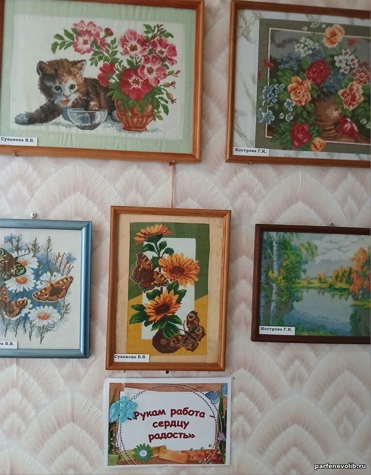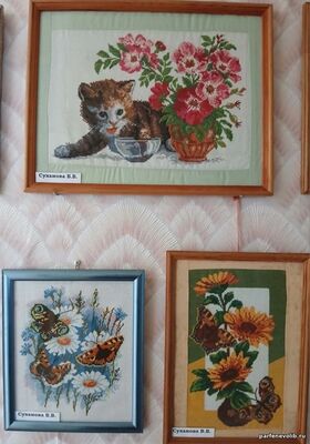 Особого восхищения заслуживает вышивка — тонкое и кропотливое искусство, представленное работами В. А. Веселовой, Т. Н. Иняхиной, С. С. Кольцовой, Г. К. Костровой и В. В. Сухановой. Каждая работа — это маленький шедевр, в который вложены душа и терпение мастериц.