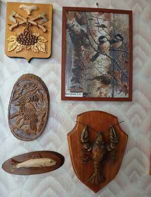 Гости выставки могут полюбоваться изящными изделиями из дерева, которые представили А. В. Костров и Н. А. Медведев. Работы мастеров подчёркивают красоту природного материала и мастерство ручной обработки.