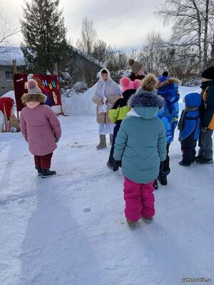 Библиотекарь выступила в роли символической Зимы, развлекла ребят загадками, посвящёнными зимним традициям и фольклору, и активно вовлекала детей в веселые игры.
