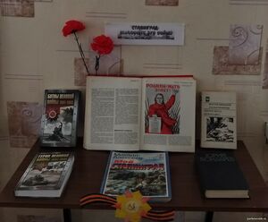 К памятной дате была оформлена книжная выставка «Сталинград: пылающее эхо войны», где представлены книги, написанные участниками Сталинградской битвы: сапёром Виктором Некрасовым, миномётчиком Юрием Бондаревым, военным корреспондентом Константином Симоновым, снайпером Василием Зайцевым. Их произведения рассказывают о событиях великой Сталинградской битвы, о героизме воинов, сделавших возможной победу в этом сражении.
