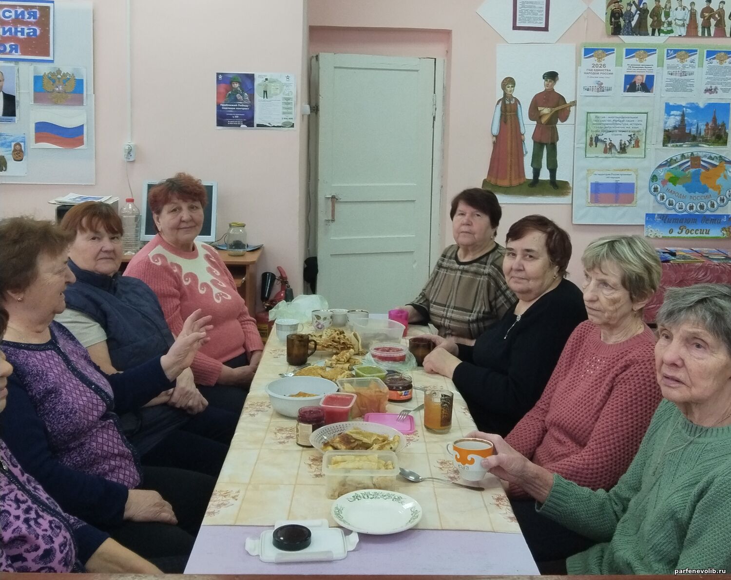 Библиотекарь рассказала гостям о традициях и обрядах этого весёлого праздника, познакомила их с главой «Масленица» из книги «Нечистая, неведомая сила» нашего земляка, писателя и этнографа С. В. Максимова. Женщины с интересом слушали историю праздника, разгадывали загадки и общались в тёплой и душевной атмосфере. Конечно, не обошлось без угощения — все наслаждались вкусными и румяными блинами.